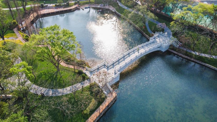 值得一提的是,越秀拿下等一期地块后,第一件事便是远赴成王人麓湖学习治湖诀窍,回归后把太阳湖和月亮湖进行全面贬责,阅历了湖水贬责、水生植物衍生,酿成生态自轮回。